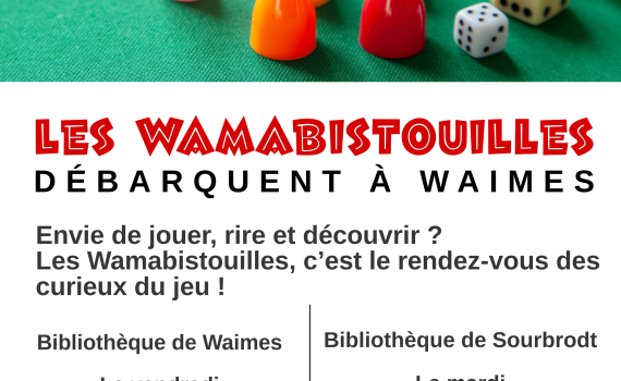 Après Malmedy, les Wamabistouilles déplacent leurs pions jusqu’à Waimes pour de nouveaux moments de jeu en famille et entre amis ! Envie de jouer, rire et découvrir ? Les Wamabistouilles, c’est le rendez-vous des curieux du jeu. Bibliothèque de Waimes (Rue de Malmedy 1)Vendredis 14 novembre et 12 décembreDe 15h […]