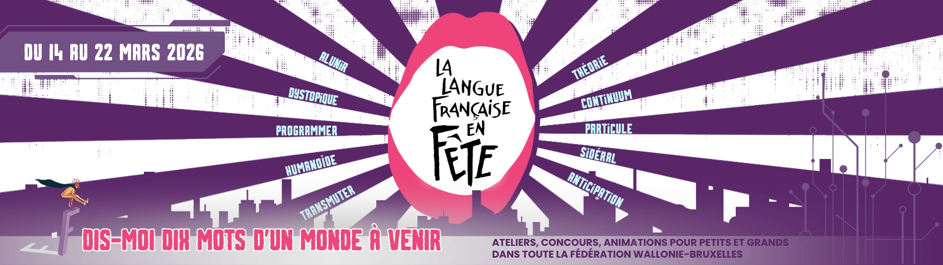 La Langue française en fête est une opération annuelle qui célèbre la richesse et la créativité du français à travers des activités culturelles et pédagogiques ouvertes à tous. Bibliothèques, écoles, centres culturels et associations proposent ateliers, lectures, spectacles et rencontres autour d’une thématique commune. Consacrée à la science-fiction, cette 31e édition est parrainée par le chroniqueur littéraire Gorian Delpâture et met à l’honneur Pont-à-Celles en tant que Ville des Mots.