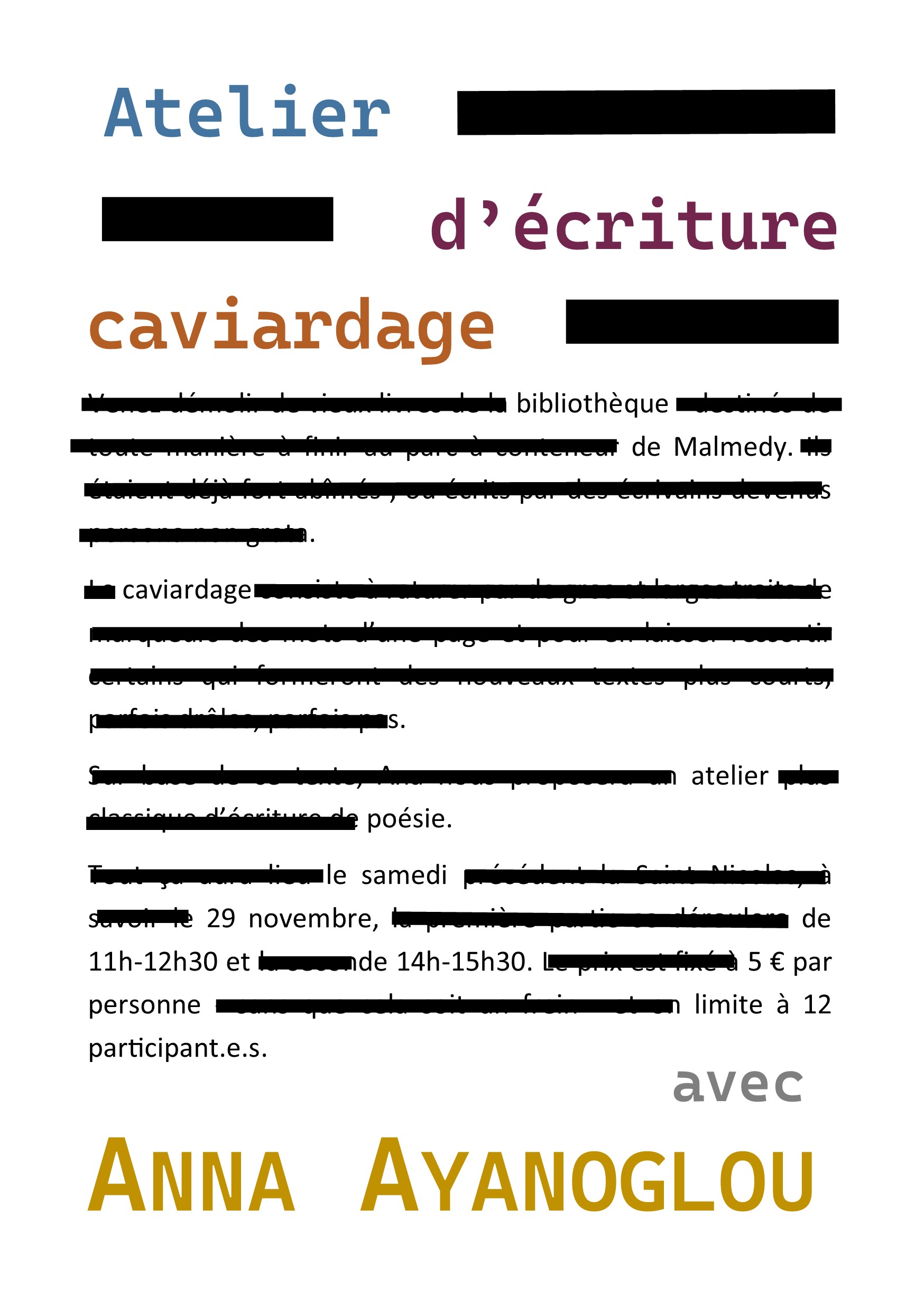 RENCONTRE/ATELIER D’ÉCRITURE – Découverte du caviardage avec Anna Ayanoglou