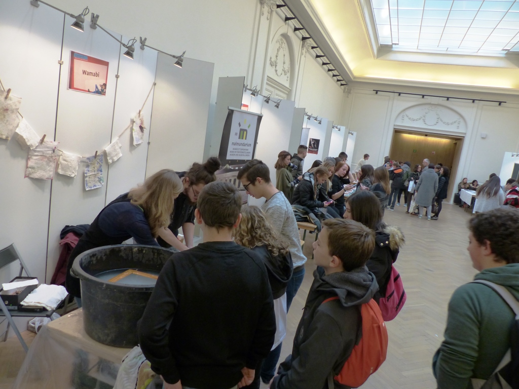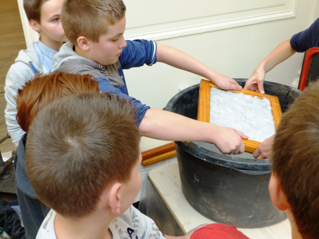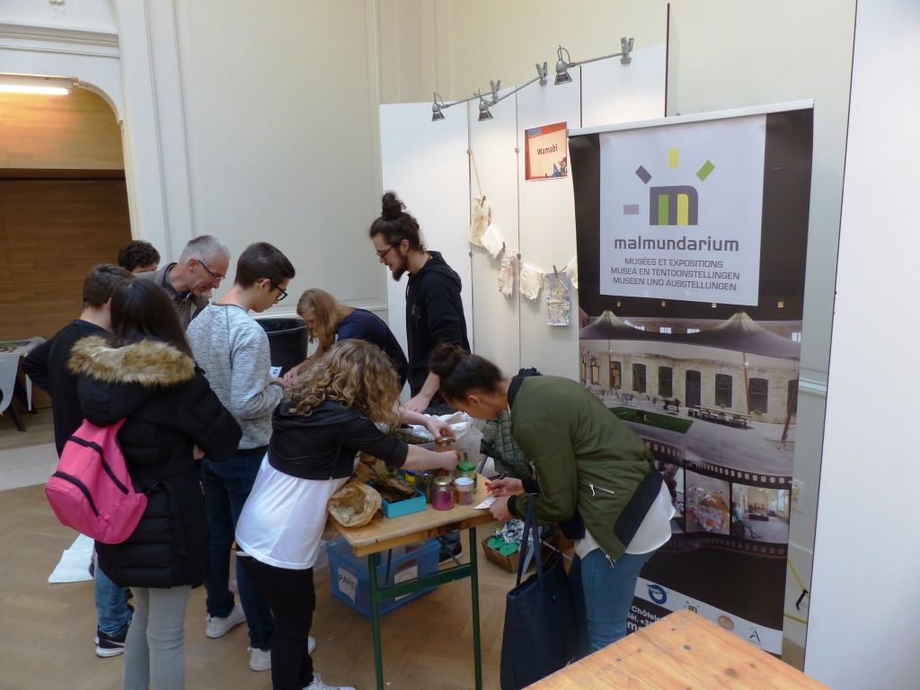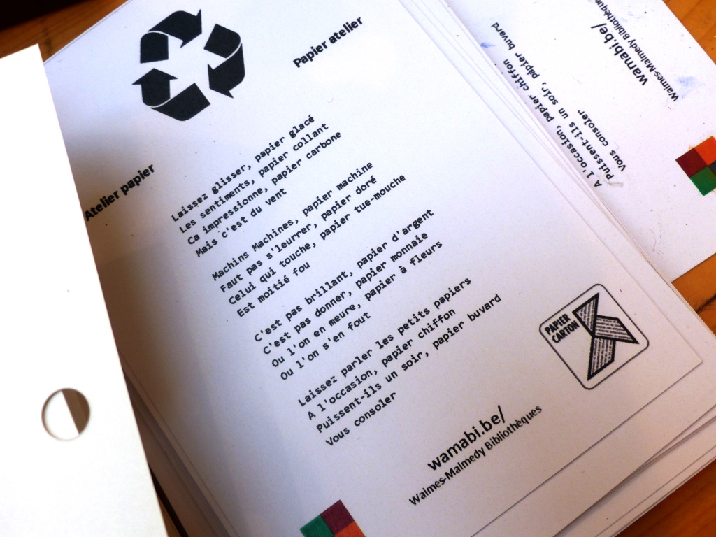 Ce 24 octobre 2016, la bibliothèque et le Malmundarium de Malmedy se sont exportés salon du livre pour adolescents qui se déroulait au Théâtre de Liège. Ils y ont proposé un atelier créatif en revenant aux fondements : créer sa feuille de papier, la faire parler ou la donner à lire, laisser le temps et le séchage modifier l’empreinte et livrer son trésor. Retour en image sur les créations des jeunes.
