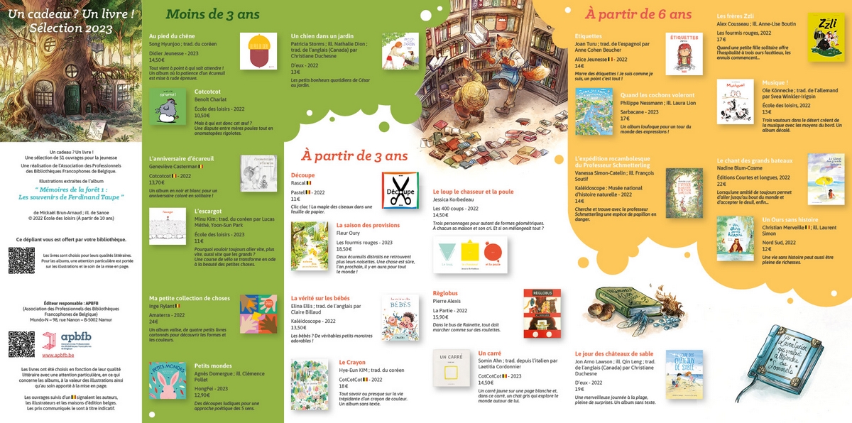 Découvrez la sélection d’albums et romans jeunesse 2023 réalisée par des bibliothécaires passionnés (APBFB). Une attention particulière a été portée à la qualité littéraire, la valeur des illustrations et la mise en page. Cliquez ICI.