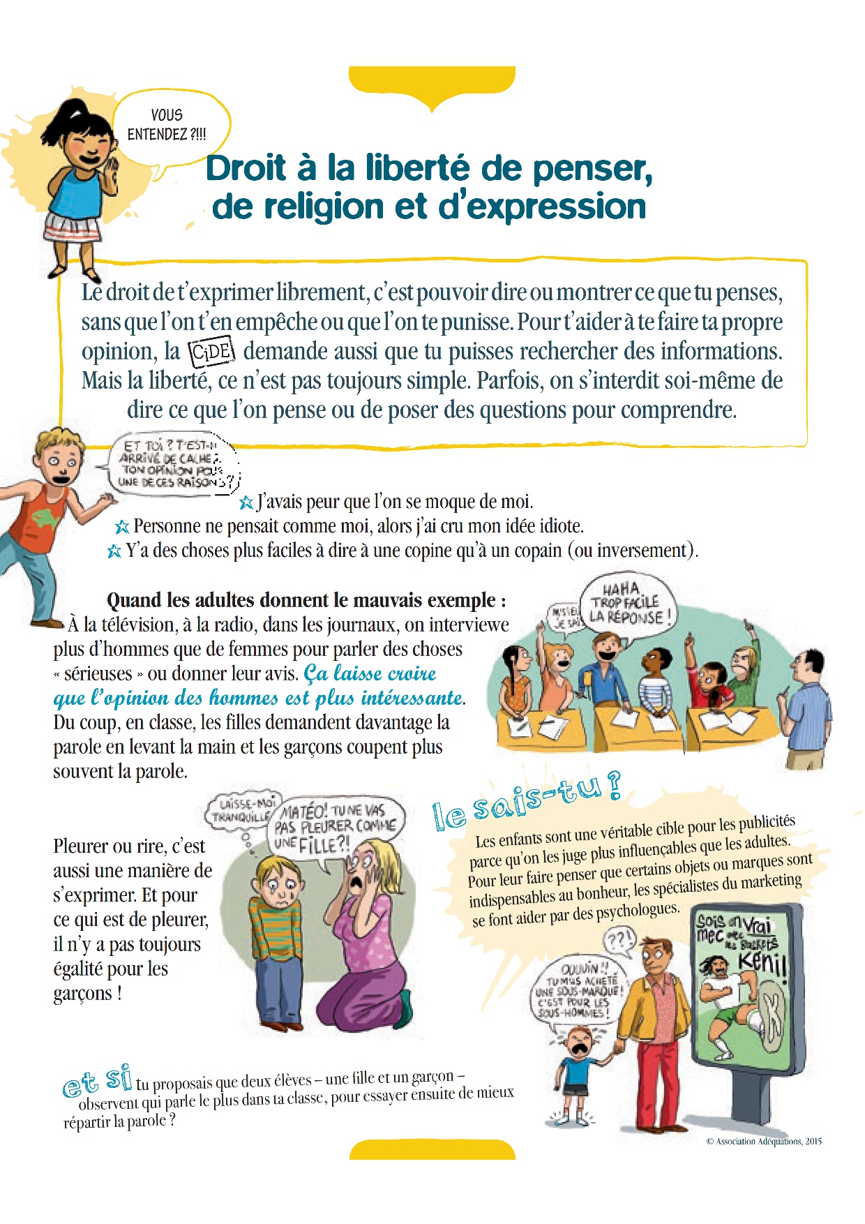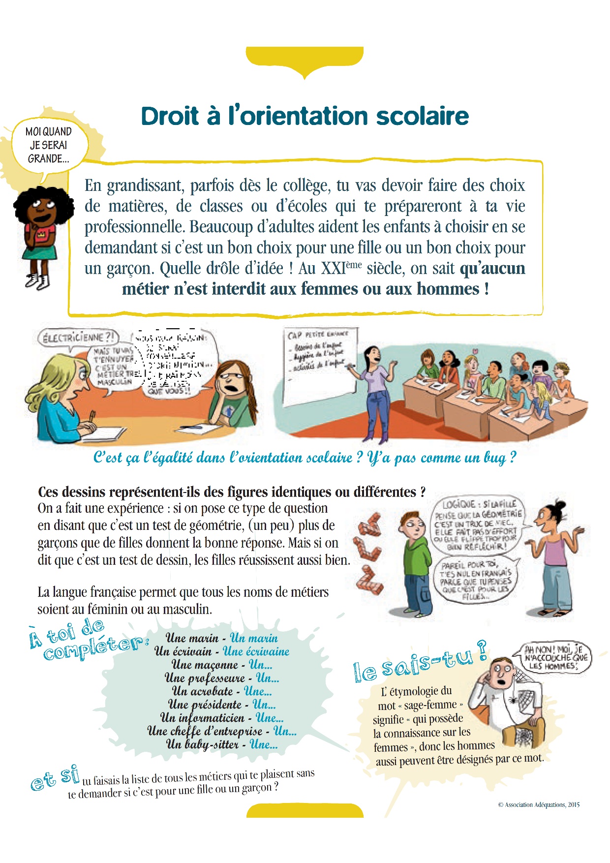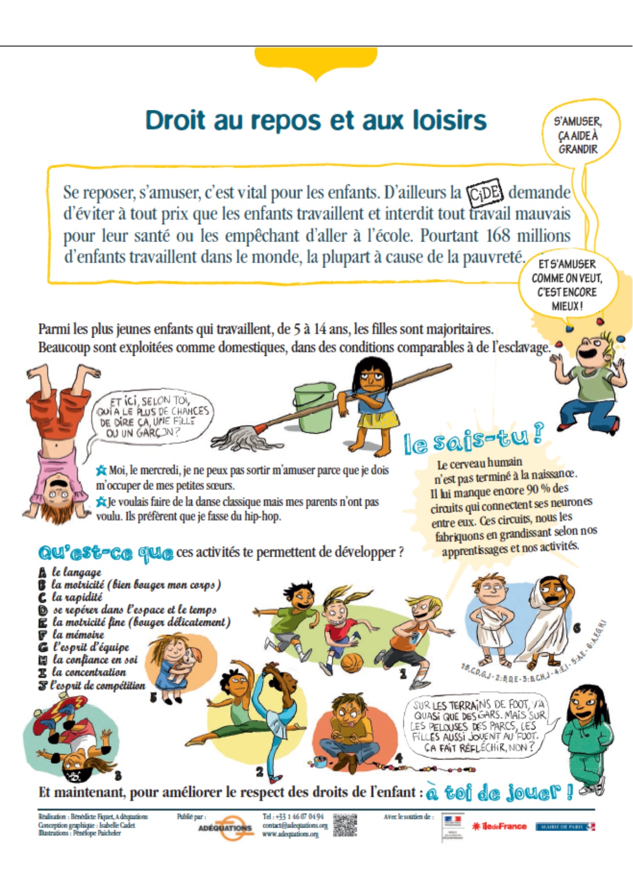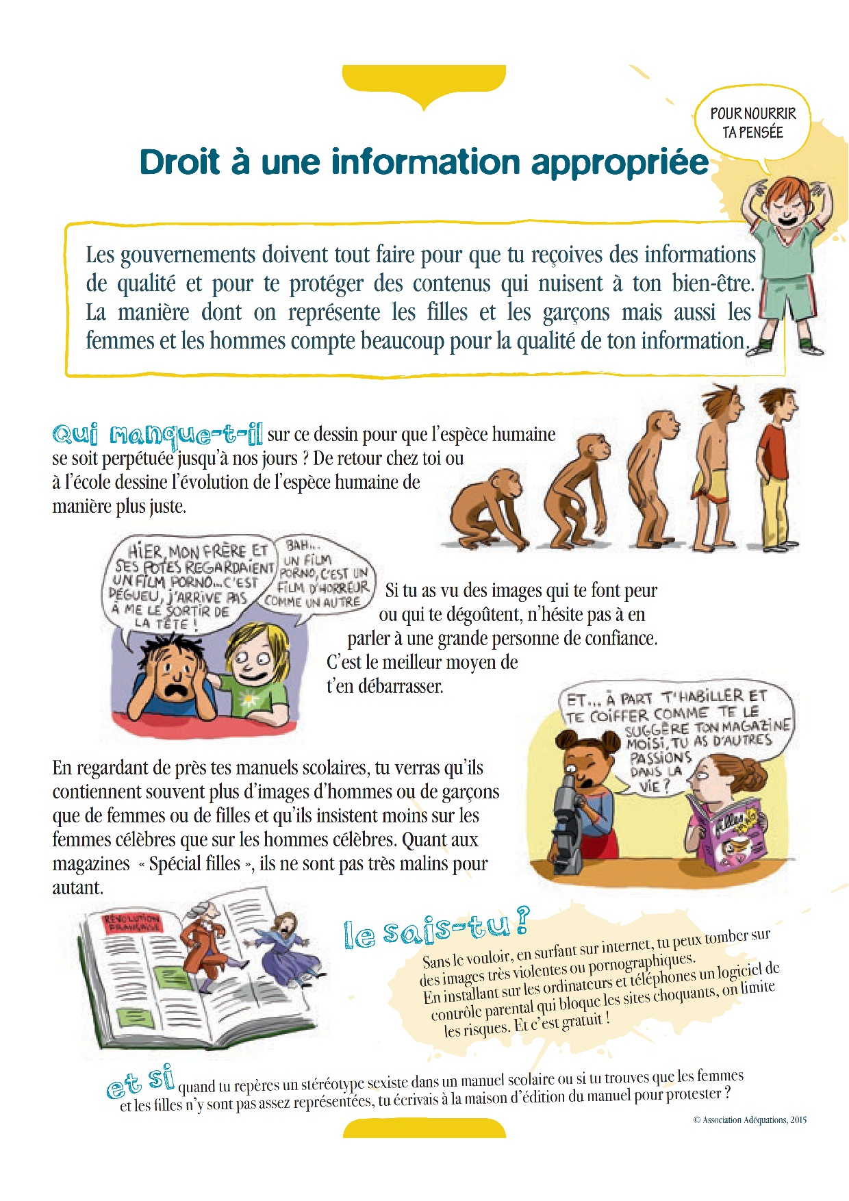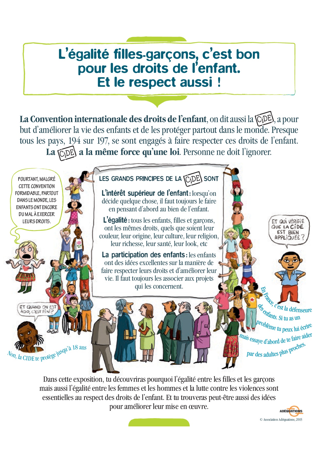 Cette exposition est proposée dans le cadre d’un partenariat entre la Direction de l’Egalité des Chances , l’association Adéquations et le Délégué général aux Droits de l’enfant, afin de promouvoir une culture de l’égalité dès le plus jeune âge.