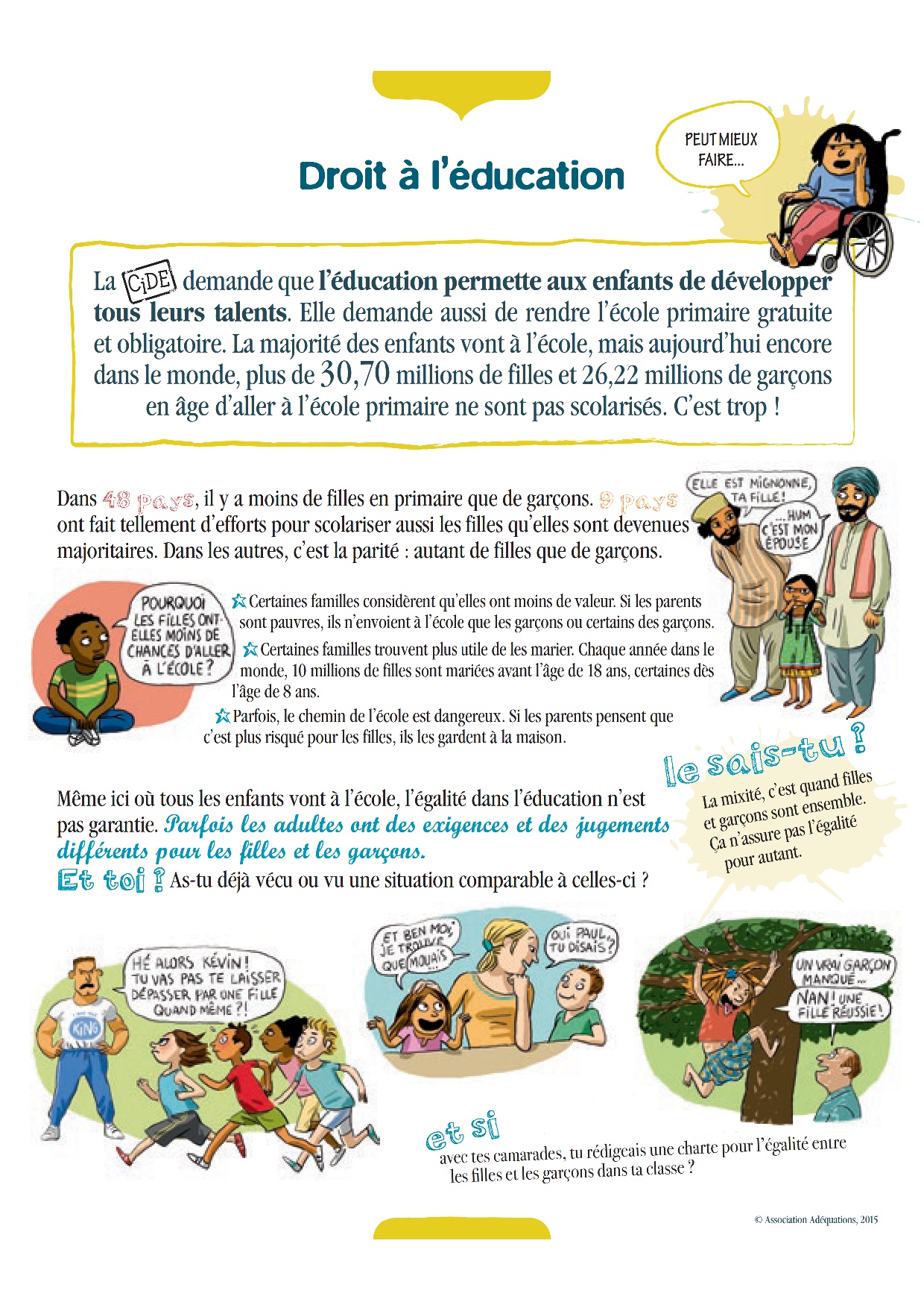 ◆ rappeler que, pour bénéficier d’un même droit, filles et garçons rencontrent parfois des difficultés différentes,