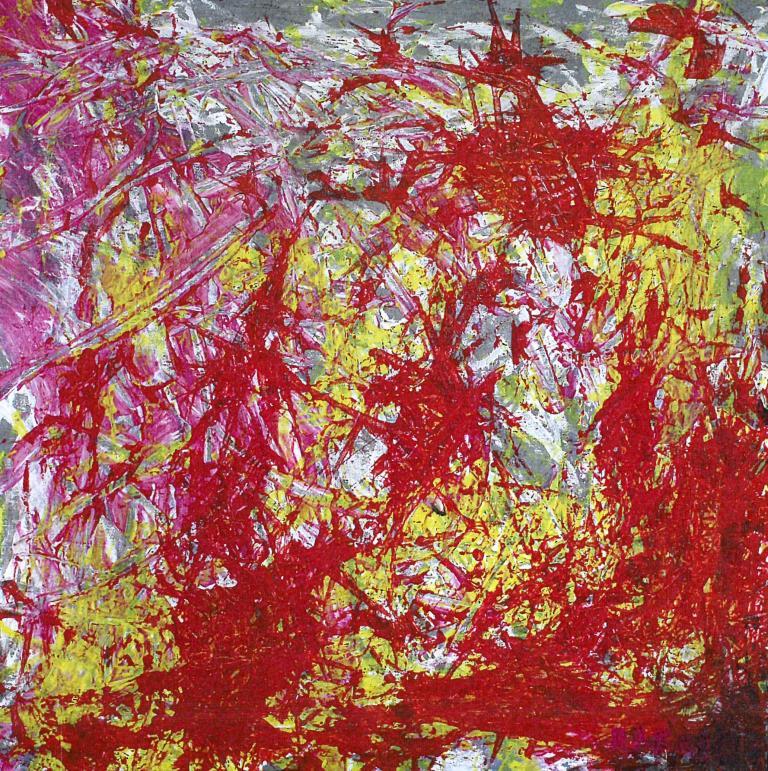» Je m’appelle Rafaid et j’ai 34 ans. J’habite à Malmedy mais j’ai des origines tunisiennes auxquelles je suis très attachées. Avant d’intégrer le Centre d’accueil de jour « Le Relais » à Malmedy, j’ai fréquenté l’asbl « Couleur Café ». C’est en participant à des ateliers créatifs que j’ai commencé à peindre et à apprécier de créer des toiles. Je n’ai pas de couleur préférée mais j’adore les couleurs vives. Cela représente bien ma personnalité. Tous les week-ends à moresnet, au centre d’hébergement où je séjourne, je profite de mon temps libre pour peindre dans ma chambre. Je décore ma chambre avec mes peintures, parfois même les couloirs car je produis beaucoup de peintures. J’ai une routine avant de peindre: j’allume la radio, je m’équipe d’un vieux T-shirt et d’un tablier de protection. Je crée toujours sur des toiles et utilise différentes techniques: au pinceau, à la spatule ou le rouleau pour préparer les toiles d’une fine couche de matière blanche. Lorsque je peins, j’oublie mon handicap et profite pleinement du moment. J’oublie tout…  » Rafaid Ben Amara