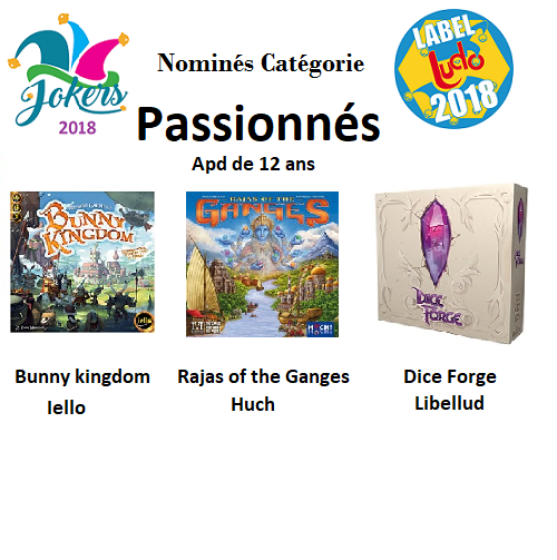 *Passionnés (à partir de 12 ans): Bunny Kingdom, Dice Forge, Rajas of the Ganges.