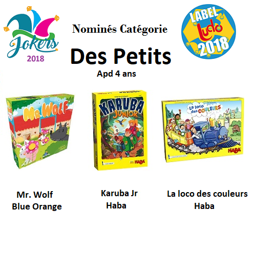 *Petits (à partir de 4 ans): Karuba Junior, La loco des couleurs, Mr Wolf.