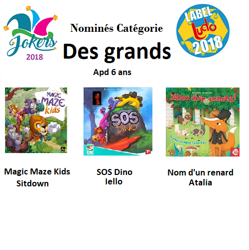 *Enfants (à partir de 6 ans): Magic Maze Kids, Nom d’un renard, SOS Dino.