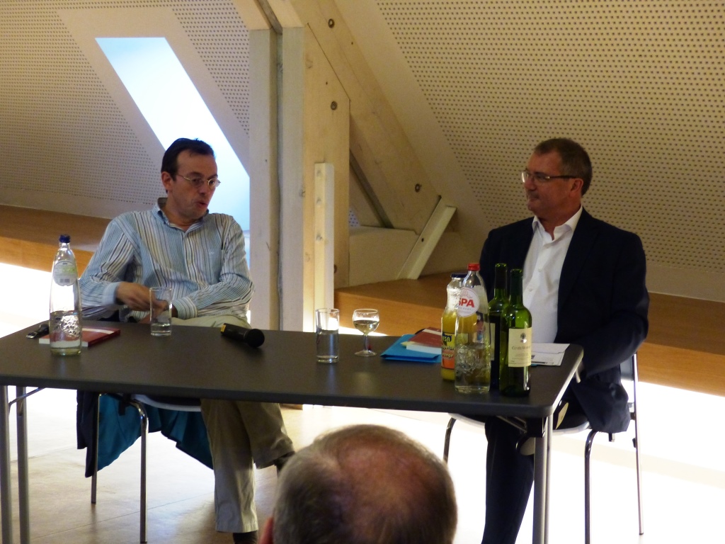 Ce vendredi 13 juin 2014, la bibliothèque était heureuse d’accueillir Jean-Marc Rigaux lors d’une rencontre littéraire. Cet auteur et avocat liégeois passionné par l’Allemagne vient de recevoir le prix Franz de Wever (décerné entre autres par Jean-Claude Bologne, Gabriel Ringlet et Marc Wilmet) pour son recueil de nouvelles : Nouvelles d’est.