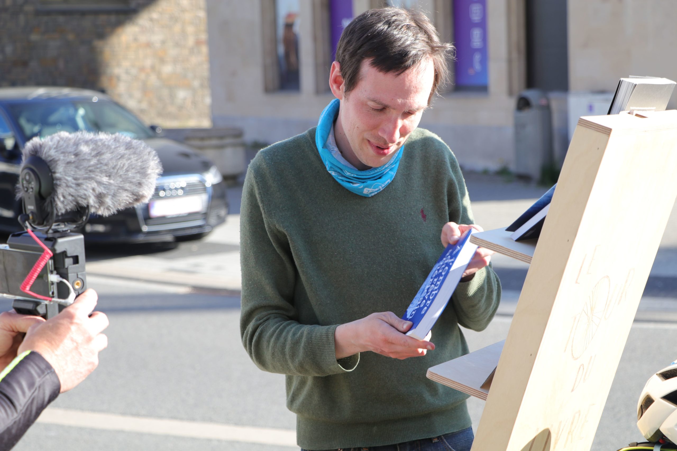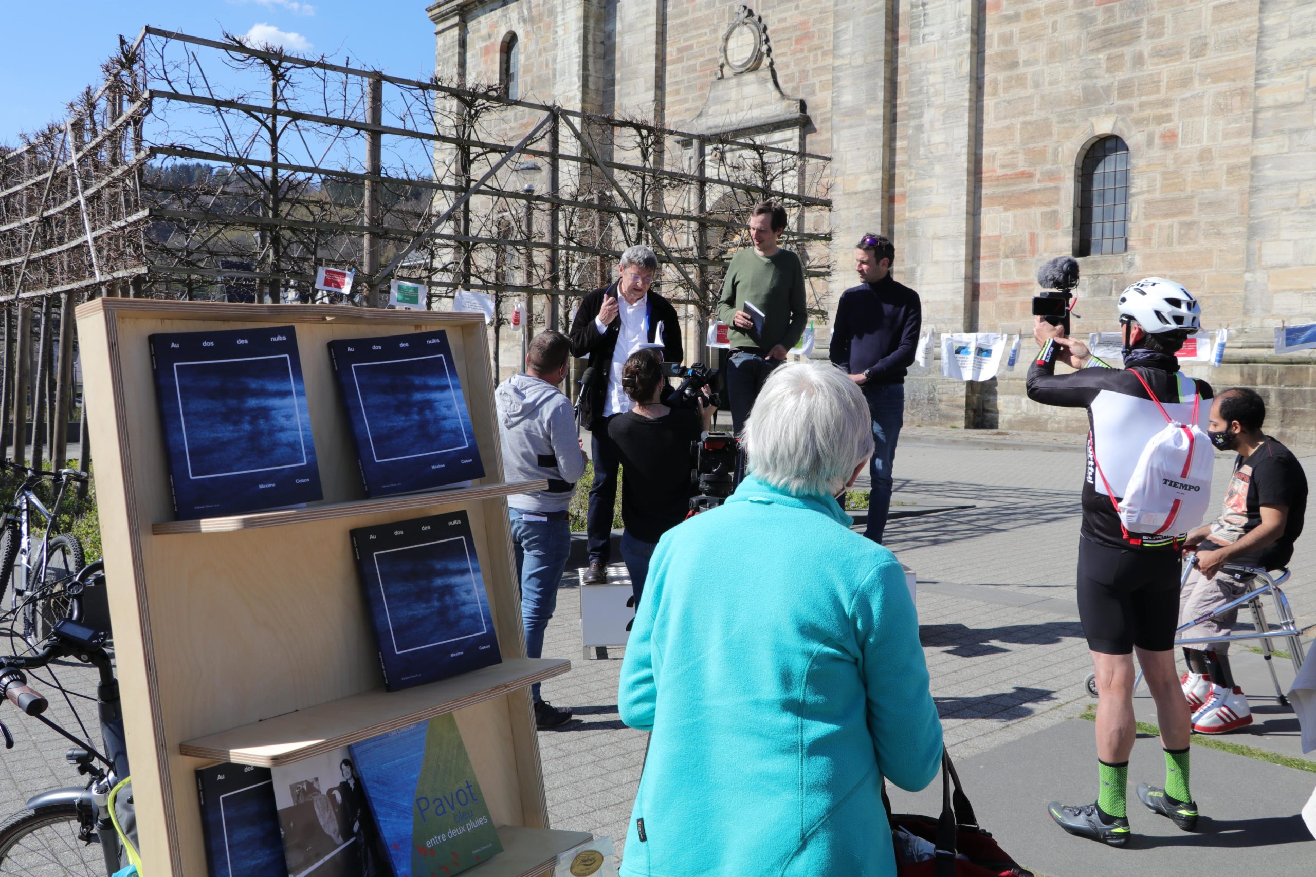 Mardi 27 avril, le poète Maxime Coton a clôturé à Malmedy la première partie de son Tour du Livre en tractant une remorque-bibliothèque pendant 10 jours sur plus de 300 kilomètres. Le but de son périple ? Rencontrer les lecteurs, promouvoir son dernier recueil intitulé « Au Dos des Nuits » aux éditions Tetras Lyre et parler de poésie, tous azimuts. Le podium et la remise des prix s’est déroulée sous le soleil, en présence de Dominique Maes et de sa Grande Droguerie Poétique.