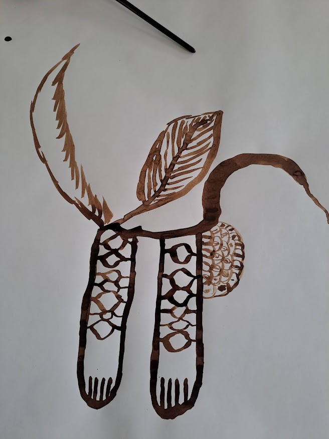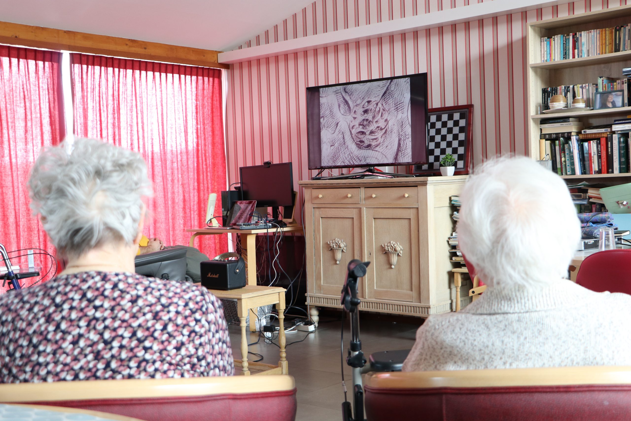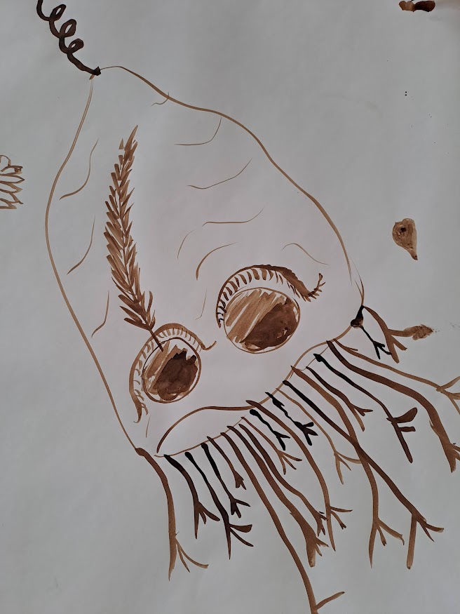 L’après-midi, nous avons navigué entre mythes et monstres, Freaks et compagnie grâce à 4 films de la collection de la Vidéothèque nomade. Après la projection, à l’aide d’un jeu de dés, les séniors ont réalisé une fresque collective et ludique à base de brou de noix maison.