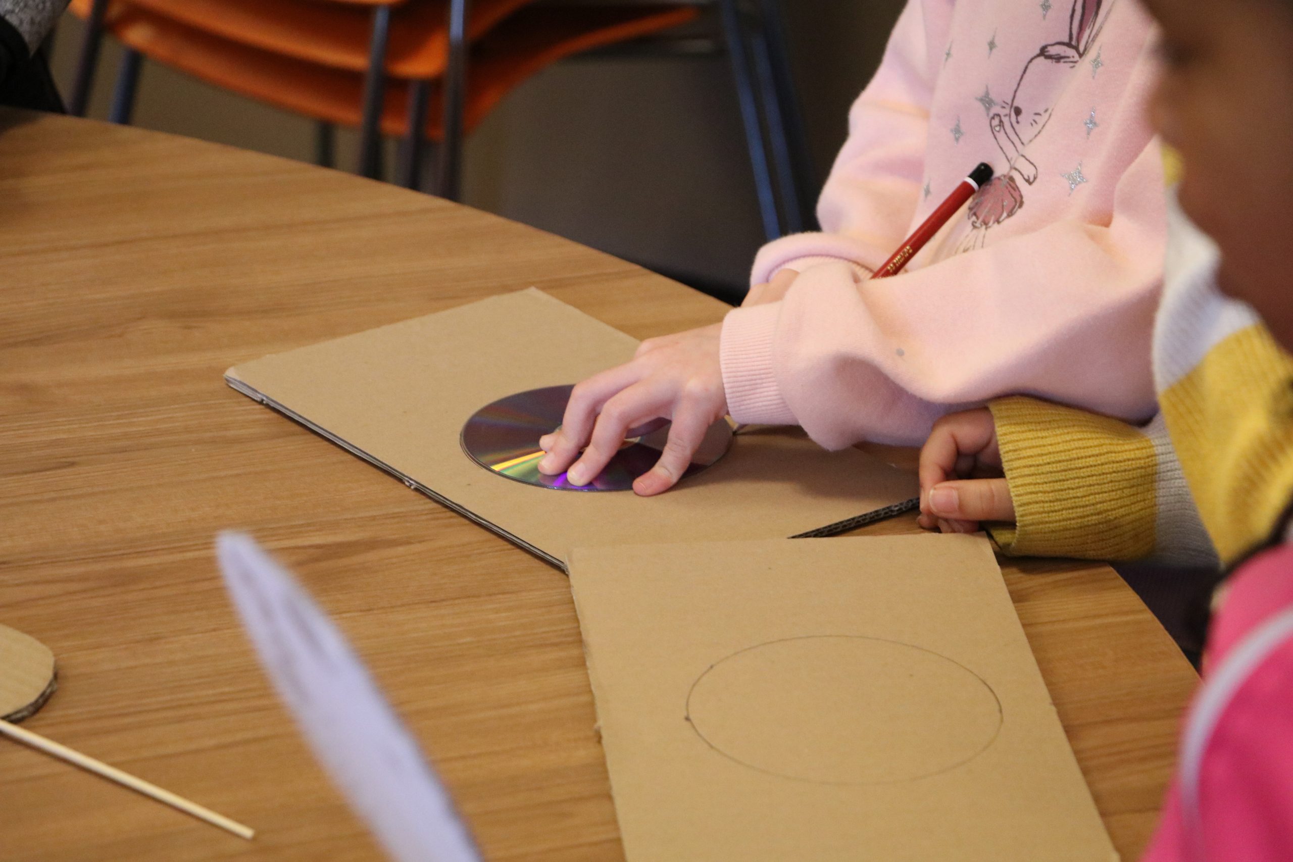La journée du vendredi était réservée aux enfants et un focus a été fait sur l’univers du cinéma d’animation et la magie des effets spéciaux « faits maison ». L’atelier créatif consistait en la fabrication de thaumatropes et de folioscopes, toujours avec la technique du brou de noix.