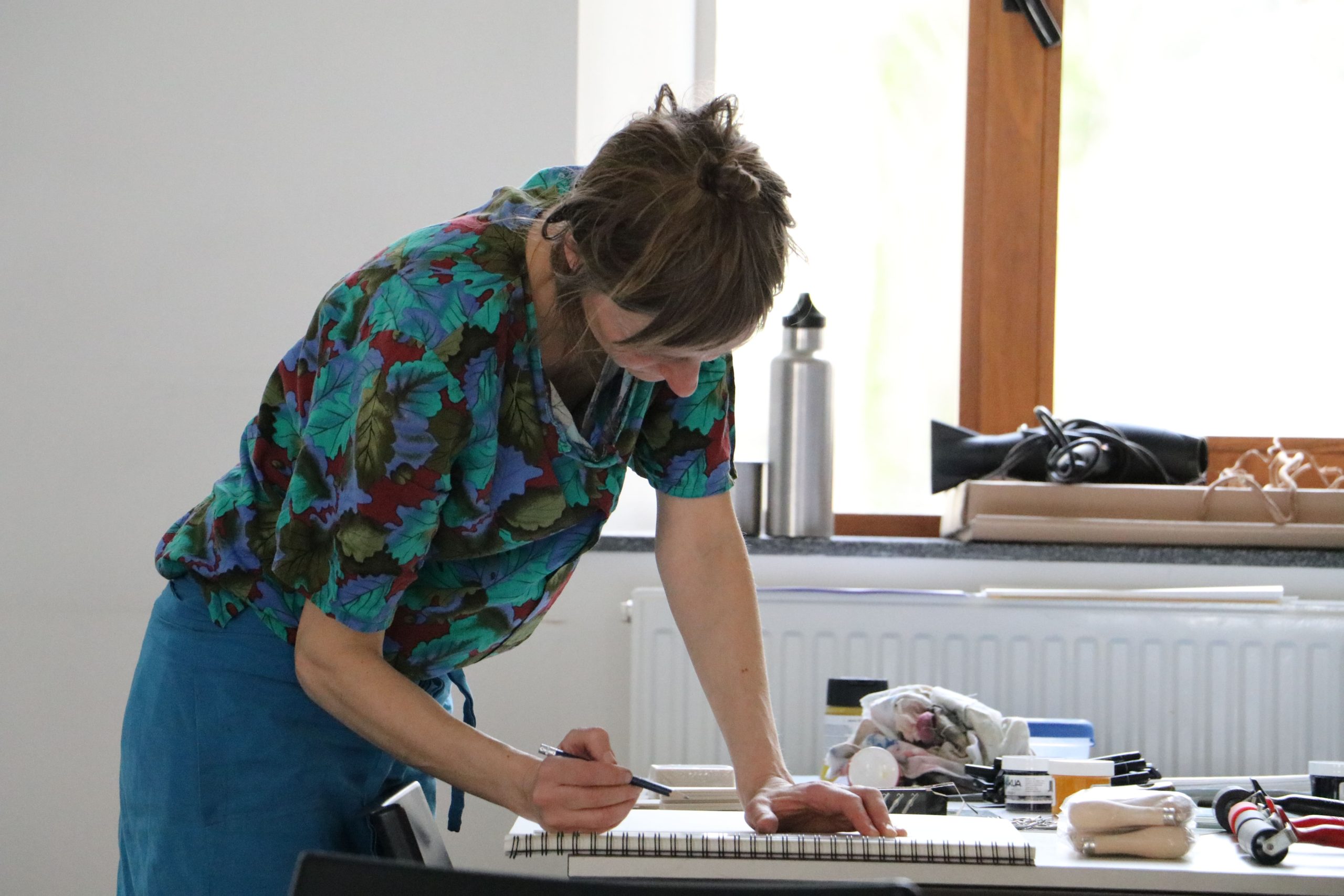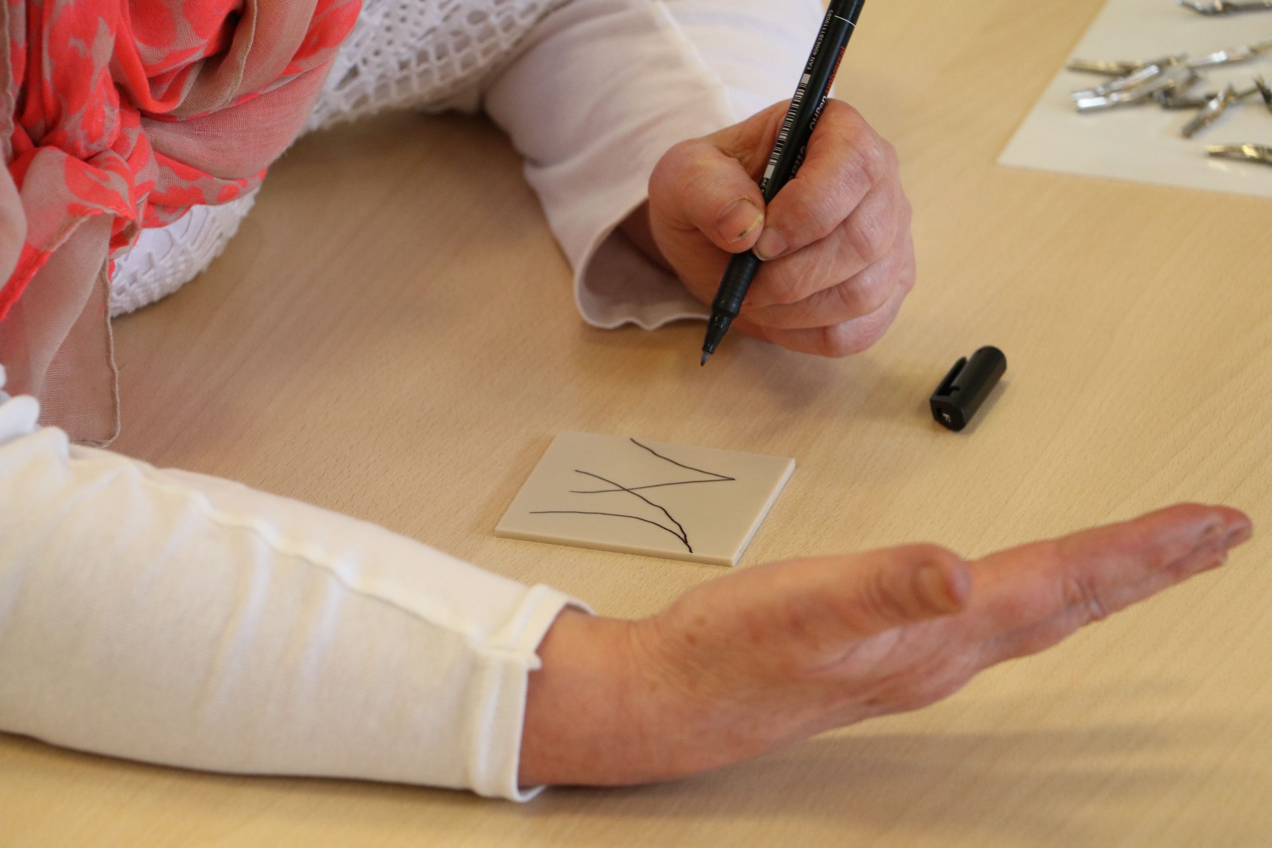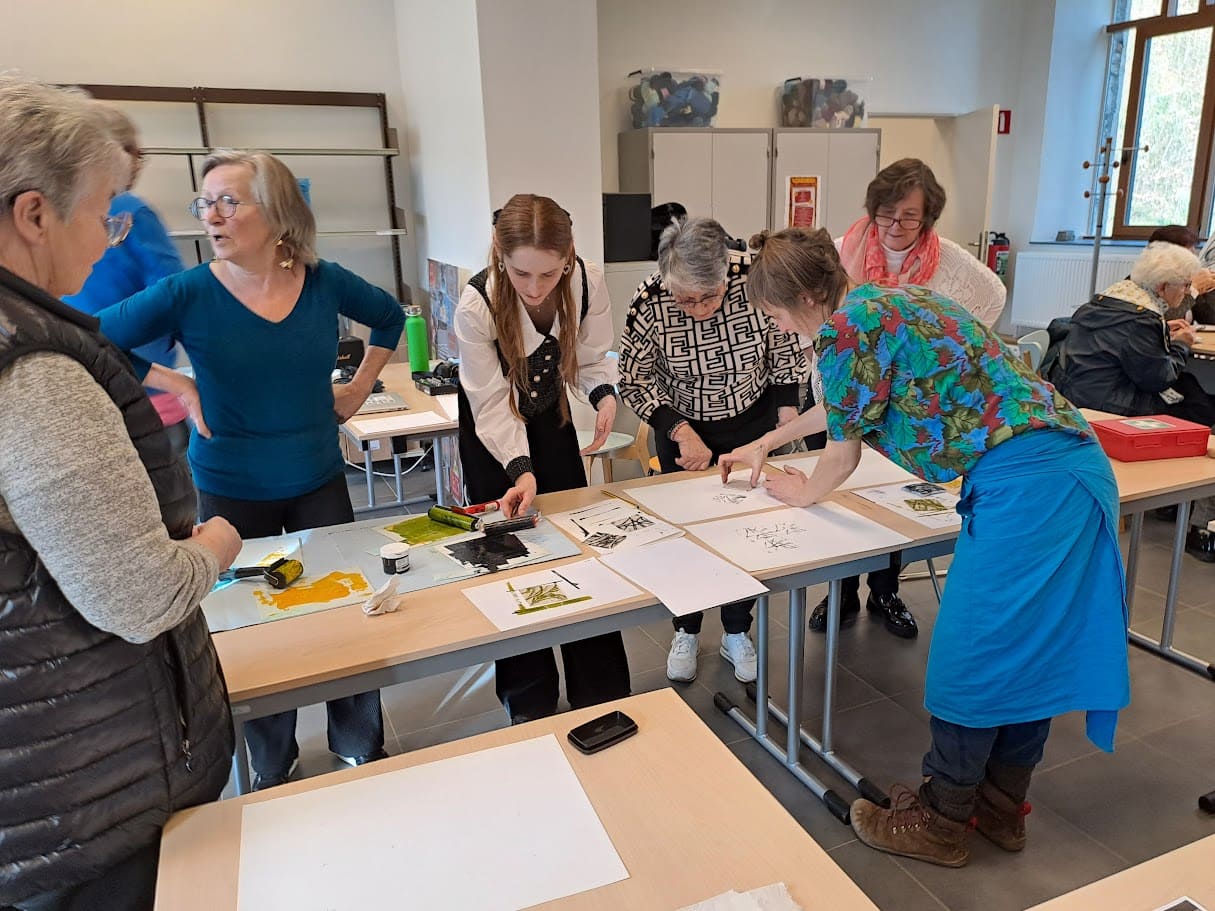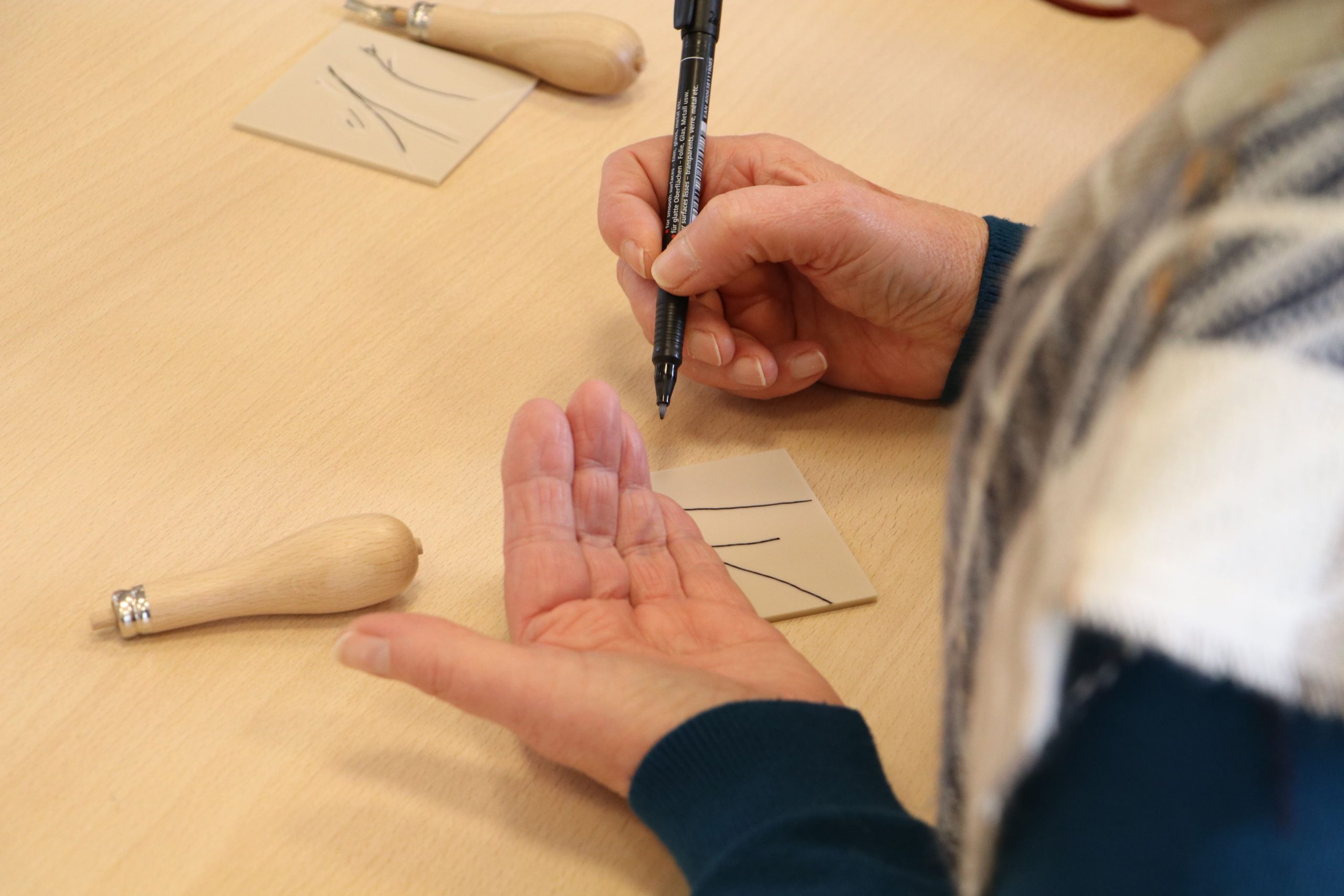 A partir des lignes de la main, les participants ont créé un tampon d’identité grâce à la technique de la gravure (sur gomme) et alimentent la fresque collective.