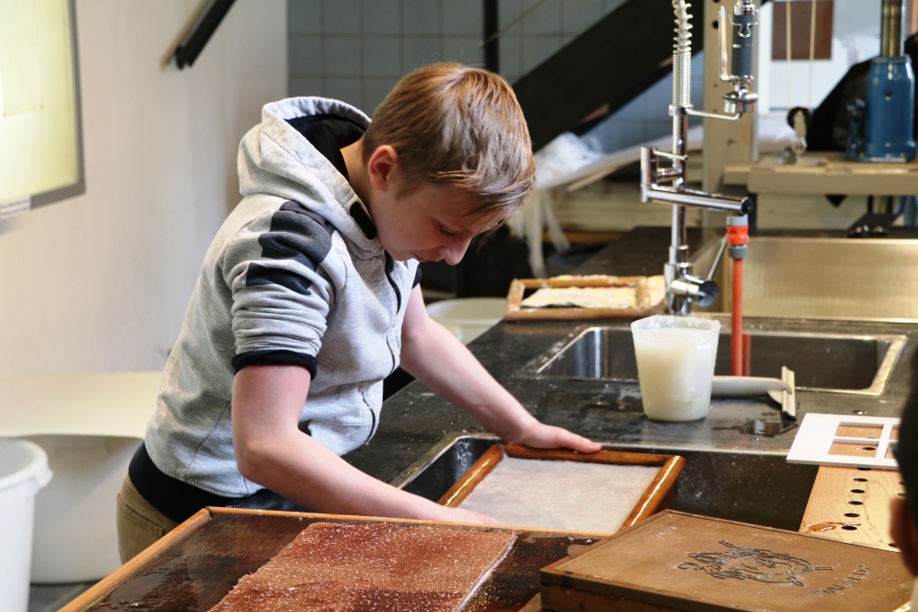 Ensuite, les jeunes ont exploré un pan de l’histoire malmédienne en réalisant eux-mêmes du papier à la cuve. L’atelier clôturait ainsi ce parcours ludique et créatif dans les entrailles de l’Ancien Monastère.
