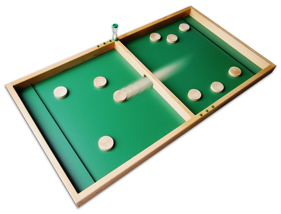 *Le « passe trappe » est un jeu qui se joue à deux et dont le but est de faire passer le plus vite possible tous les palets de son camp dans le camp adverse au moyen d’un élastique.