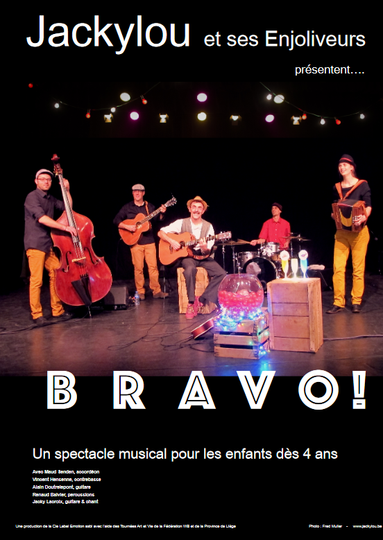 Jackylou et ses Enjoliveurs font halte le jeudi 13 août à 15h à Malmedy pour présenter leur spectacle «Bravo», un florilège des meilleurs titres dans une mise en scène de type concert. Un moment musical à vivre en famille.